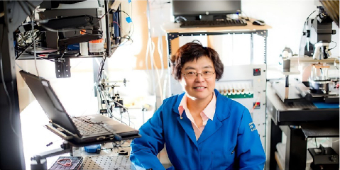 Connie Chang-Hasnain in the laboratory at Berxel Photonics.